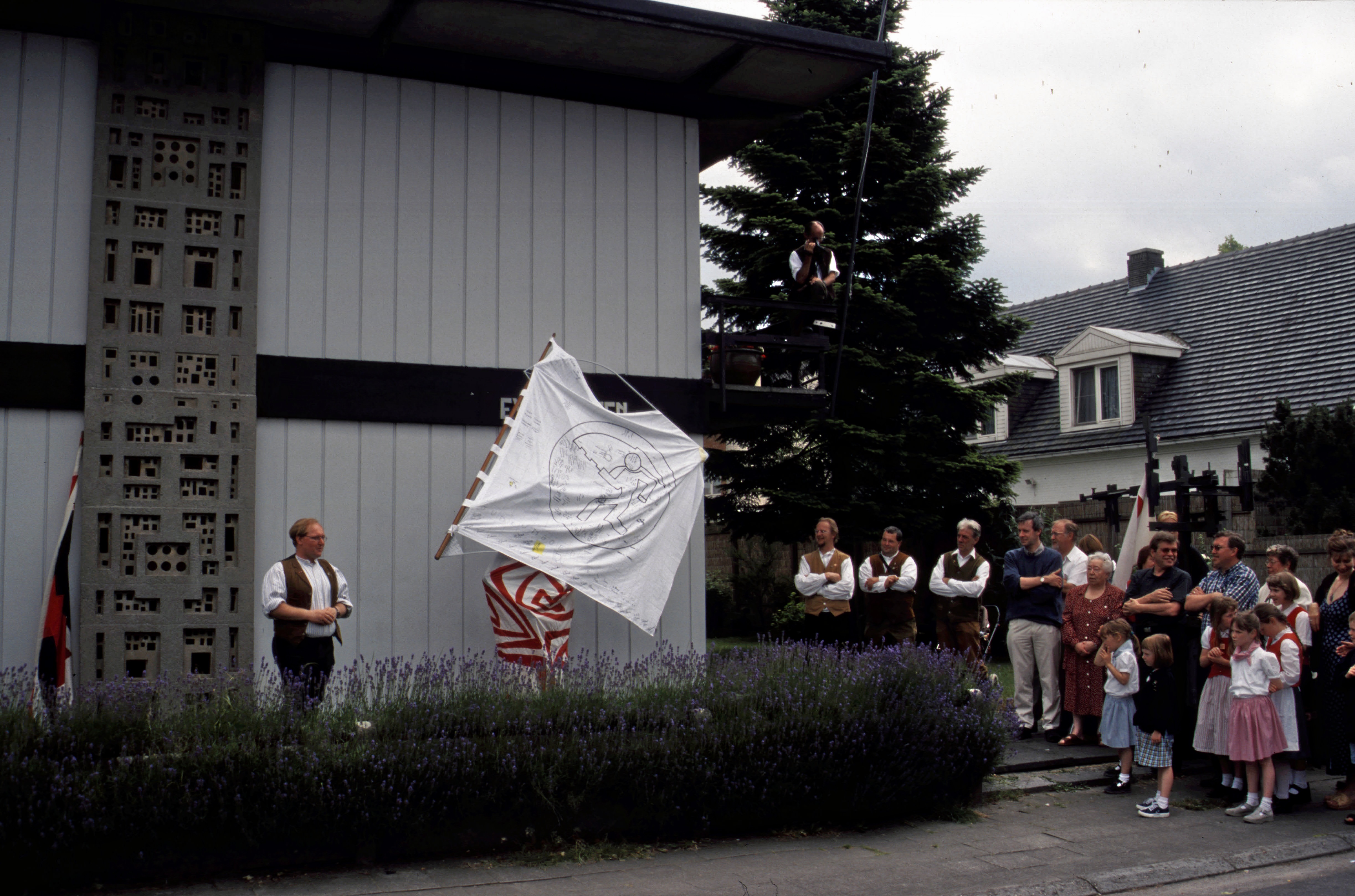 stevige natievlaggen meegedragen.